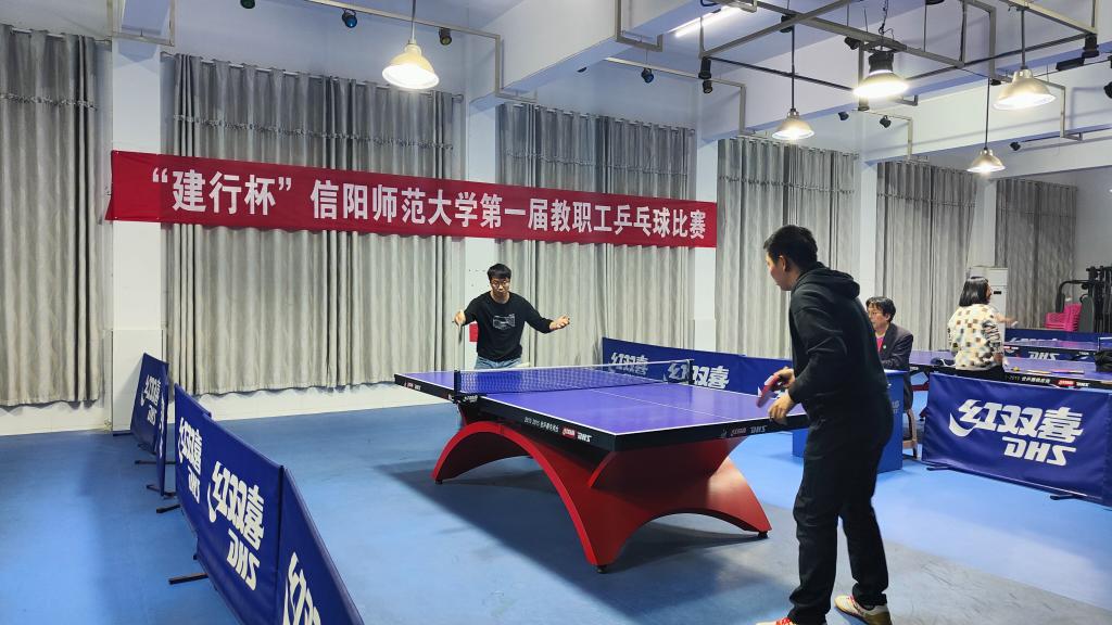 4月9日至16日,由校工会主办,教职工兵乒球协会承办,图书馆、国际教育学院、外国语学院协办的伟德vb首届“建行杯”教职工乒乓球比赛成功举行。校党委副书记、工会主席岳宗德,建设银行信阳分行副行长石卫东出席开幕式,校工会、体育学院、乒乓球协会负责人以及来自26支分工会代表队的200余名乒乓球爱好者参加了开幕式。
