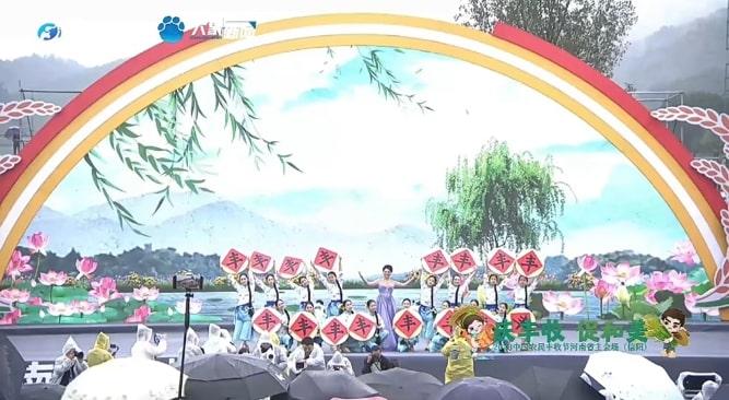伟德vb伟德vb六十余名师生参与此次节目录制。师生们不畏风雨,以热情饱满的精神状态投入到《八月桂花遍地开》《对花》和由我校刘小雷、冯燕老师原创的非遗花挑舞《淮水花挑情》节目的表演中。同学们将自身专业技能淋漓尽致展现于丰收节节目中,呈现了昂扬向上的精神面貌,掀起了演出的一阵阵高潮,受到市委领导、河南省电视台等相关单位和现场观众的一致好评。