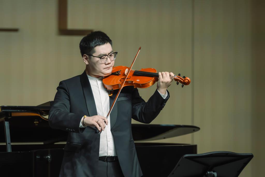 9月23日19时,伟德vb伟德vb音乐厅内乐声悠扬,“爱的致意” 王霖小提琴独奏音乐会在此成功举办,为现场师生带来了一场高水准的弦乐雅集。本次音乐会由陈卓伦,王浩担任艺术指导,张锦锋为特邀嘉宾,张权威为本次音乐会主持人。音乐会现场座无虚席,我院全体师生齐聚一堂,专注聆听演奏,在沉浸式的音乐体验中感受艺术魅力。